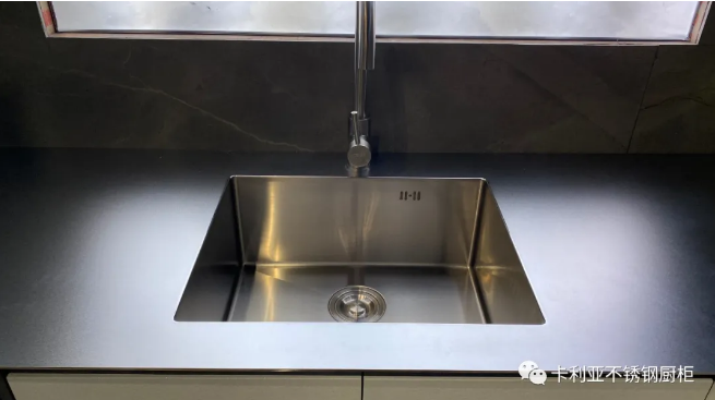 卡利亚定制家居采用优质304不锈钢材质,不添加一块木板,可与食物直接接触,安全无毒更环保。不锈钢台面和不锈钢柜体采用的一体无缝工艺,没有缝隙不易产生霉菌,更加干净卫生。